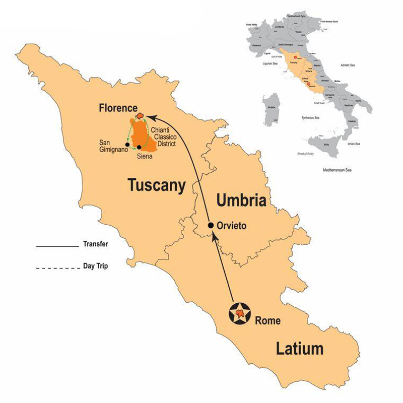 Check-out from the hotel and head up to Florence in a comfy Mercedes executive van. Along the way, we will stop in Orvieto, a beautiful hilltop town in Umbria, founded by the Etruscan civilization over two thousand years ago. You’ll have free time to enjoy lunch on your own and to explore the village. Arrival in Florence in the mid-afternoon. Check-in, relax, refresh, then enjoy a group dinner with delicious Tuscan specialties.